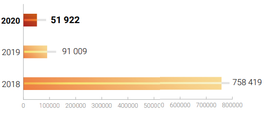 As of December 31, 2020, there are more than 34 thous. corporate entities and circa 830 thous. household consumers among “AlmatyEnergoSbyt” LLP customers.