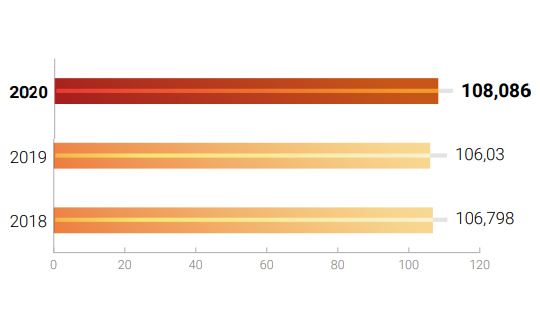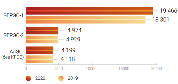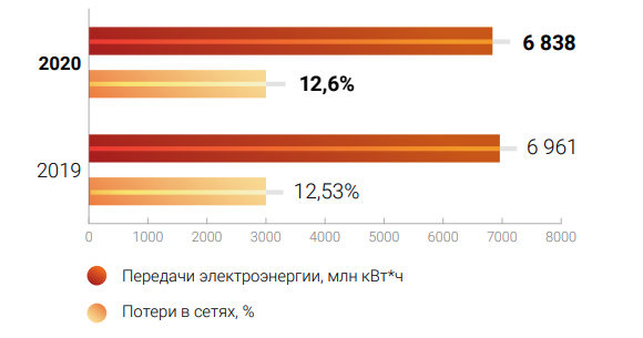 Electricity transmission volumes amounted to – 6,838 mln kWh, decreased as compared to 2019 volumes (a 124 mln kWh decrease). The decrease in the volume of electricity transmission at “Alatau Zharyk Company” JSC due to the decrease in consumption of Almaty region resulted from the emergency situation in the country because of COVID-19 pandemic