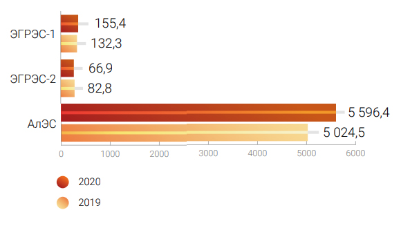 In general, electricity production growth across the RK is connected with an increase in production by TPP and GTPP, as well as commissioning of new RE facilities. Electricity generation by “Samruk-Energy” JSC RES facilities (SPP, WPP, small HPP) in January-December 2020 amounted to 335.8 mln kWh or 10.8 % of the total volume of electricity generated by RES facilities, which is 2 % lower compared to the same period of 2019 (in January–December 2019, the generation of the Company’s RES amounted to 342.5 mln kWh, and the share of the Company’s RES was 17.8 %)