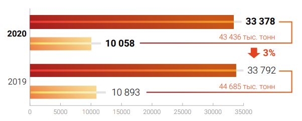 - for export (RF) – 10,058 thous. tons, which is 7.7 % less than for the corresponding period of 2019 (10,893 thous. tons).