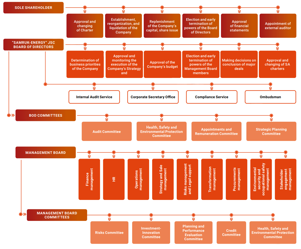 The Сompany fully recognizes the importance of effective corporate governance, therefore, an appropriate corporate governance is one of strategic objectives of “Samruk-Energy” JSC.