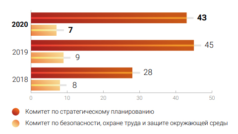The aim of the Committee is to provide recommendations to the Council on the development of priority areas of activity (development), strategic goals (development strategies) of the Company, the implementation of a sustainable development management system, including labor and environmental issues, the implementation of investment projects, the Company’s master plan and events that contribute to improving the efficiency of the Company in the long term.