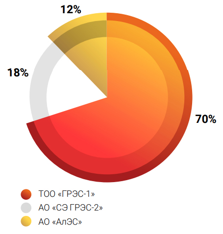 The Company has successfully implemented several investment projects in RES and HPP sector since 2013: 300 MW “Moynak HPP” JSC, 45 MW First wind power plant, 2 MW solar power plant, retrofit of “Shardarinsk HPP” JSC with an increase in capacity to 126 MW.