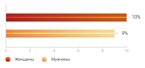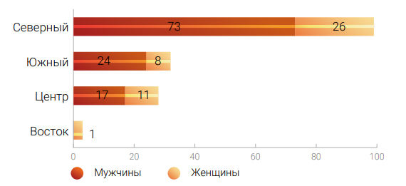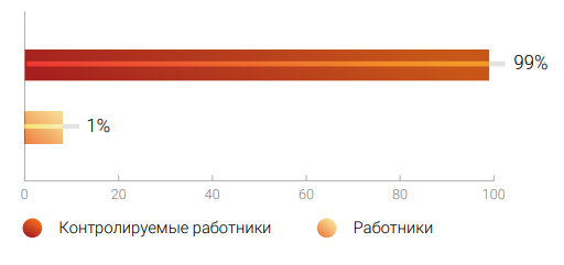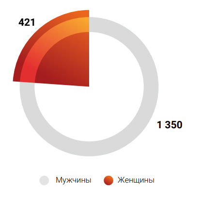 In connection with the production specifics of the Company’s operations, male employees are involved in the main production areas, whose share of the total staff in 2020 was 74 %.