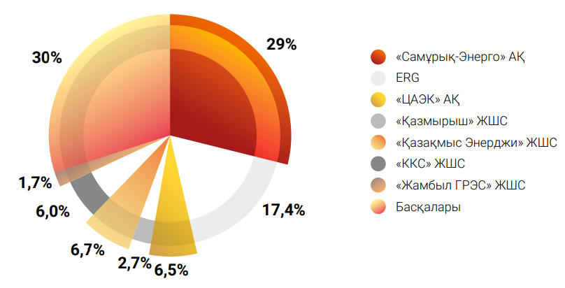 Сонымен қатар, негізгі бәсекелестер – «Қазақмыс Энерджи» ЖШС бойынша аталған көрсеткіш 6,7 %-ды, ККС – 6 %-ды, ERG – 17,4 %-ды құрады.