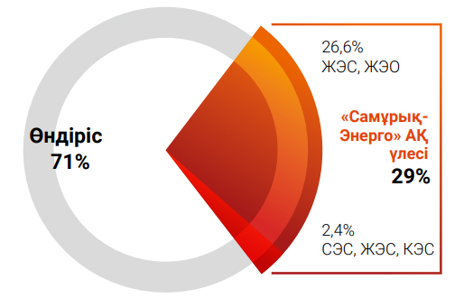 «Самұрық-Энерго» АҚ-ның «таза» электр энергиясын өндіруі (ЖЭК + Ірі СЭС-тер) |