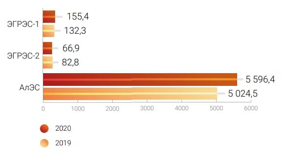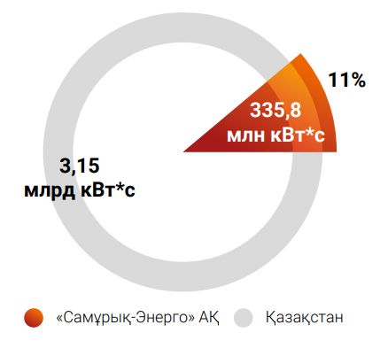 2020 жылдың қаңтар-желтоқсанында «СамұрықЭнерго» АҚ ЖЭК объектілері (КЭС, ЖЭС, шағын СЭС) бойынша электр энергиясын өндіру 335,8 млн кВт*с-ын немесе ЖЭК объектілері өндіретін электр энергиясының жалпы көлемінің 10,8 %-ын құрады, бұл 2019 жылдың ұқсас кезеңімен салыстырғанда 2 % -ға төмен (2019 жылдың қаңтар-желтоқсанда Қоғам ЖЭК-терінің электр энергиясын өндіруі 342,5 млн кВт*с құрады, ал Компанияның ЖЭК үлесі 17,8 %-ды құрады).
