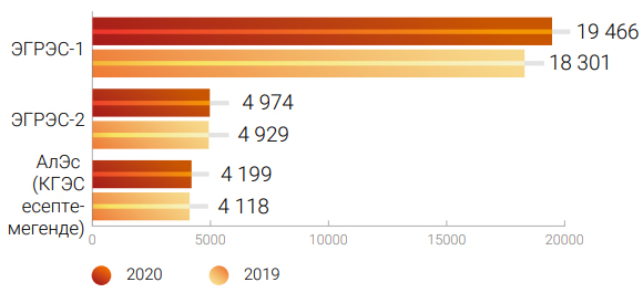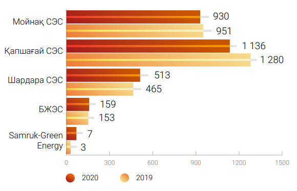 2020 жылдың қаңтар-желтоқсан айларында Компанияның «таза» электр энергиясын (КЭС, ЖЭС, шағын және ірі СЭС) өндірудегі үлесі 2019 жылдың сәйкес кезеңімен (3 046,2 млн кВт*с) салыстырғанда 21,7 %-ға (2 386,2 млн кВт*с) төмендеді.