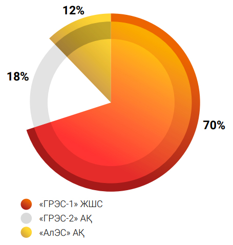 - ЖЭК және СЭС-те «таза энергия» өндіру үлесі – компаниялар тобының жалпы өндіру көлемінің 8,7 %;